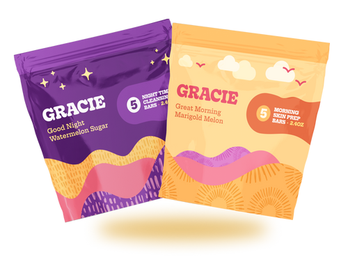 Morning: Wet face with warm water. Lather a Good Morning (Kaolin Clay) bar and apply in gentle circular motions. Rinse thoroughly and pat dry. Apply moisturizer, then your stage makeup. Each small bar lasts about a week of daily use.